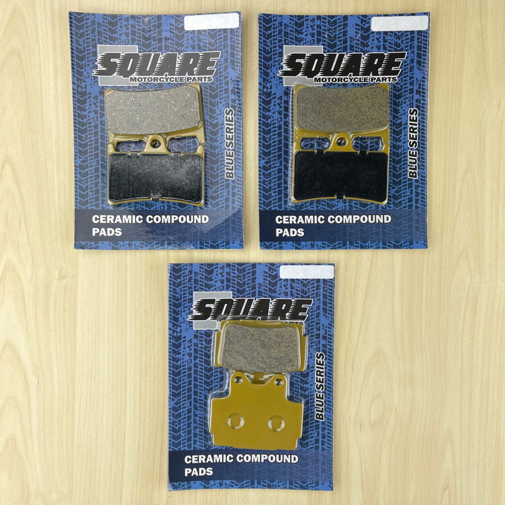 This set of blue series brake pads will fit the front and rear brake on a Yamaha TZR250 for the years and models shown above. The front left, front right and rear pads are included.