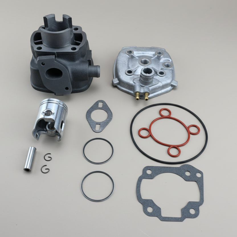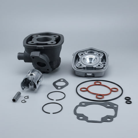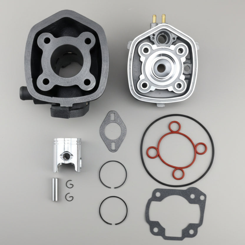This cylinder kit has been manufactured to replace the original top end on an Aprilia SR50 for the years and models shown above. The kit includes the cylinder / barrel / jug, head, piston kit and gaskets.