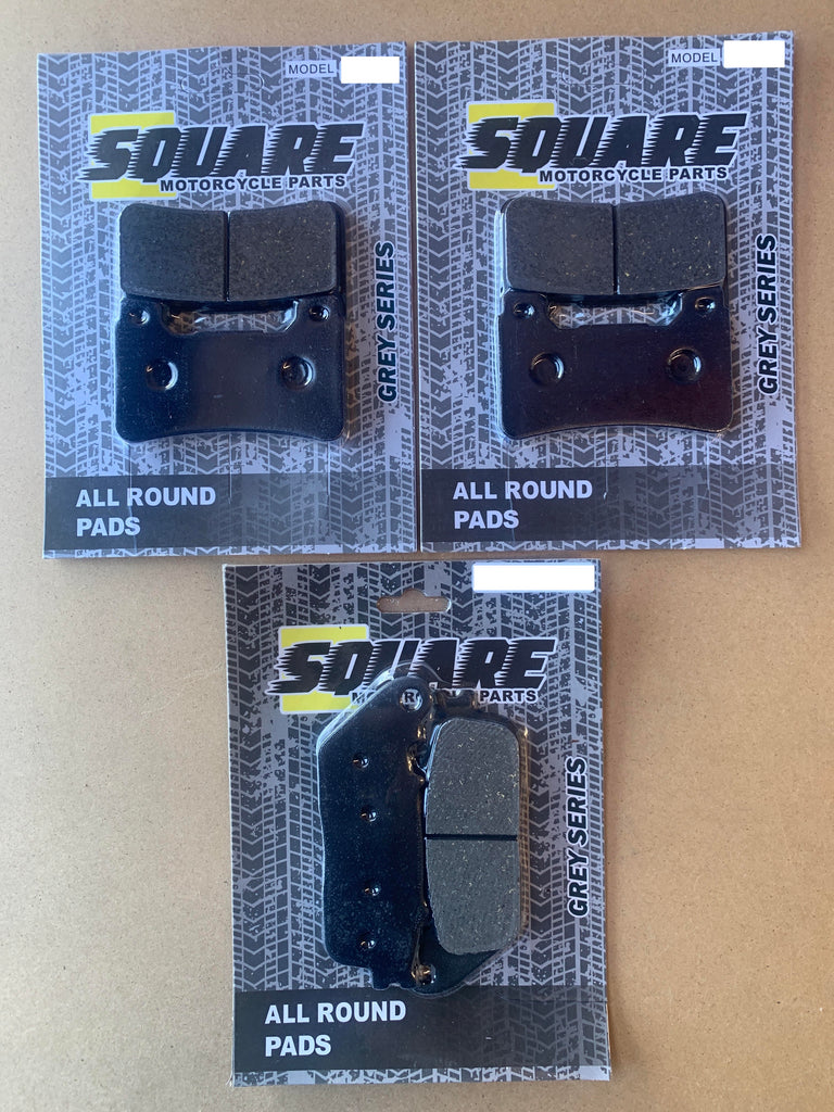 The set includes the front left, front right and rear brake disc pads.