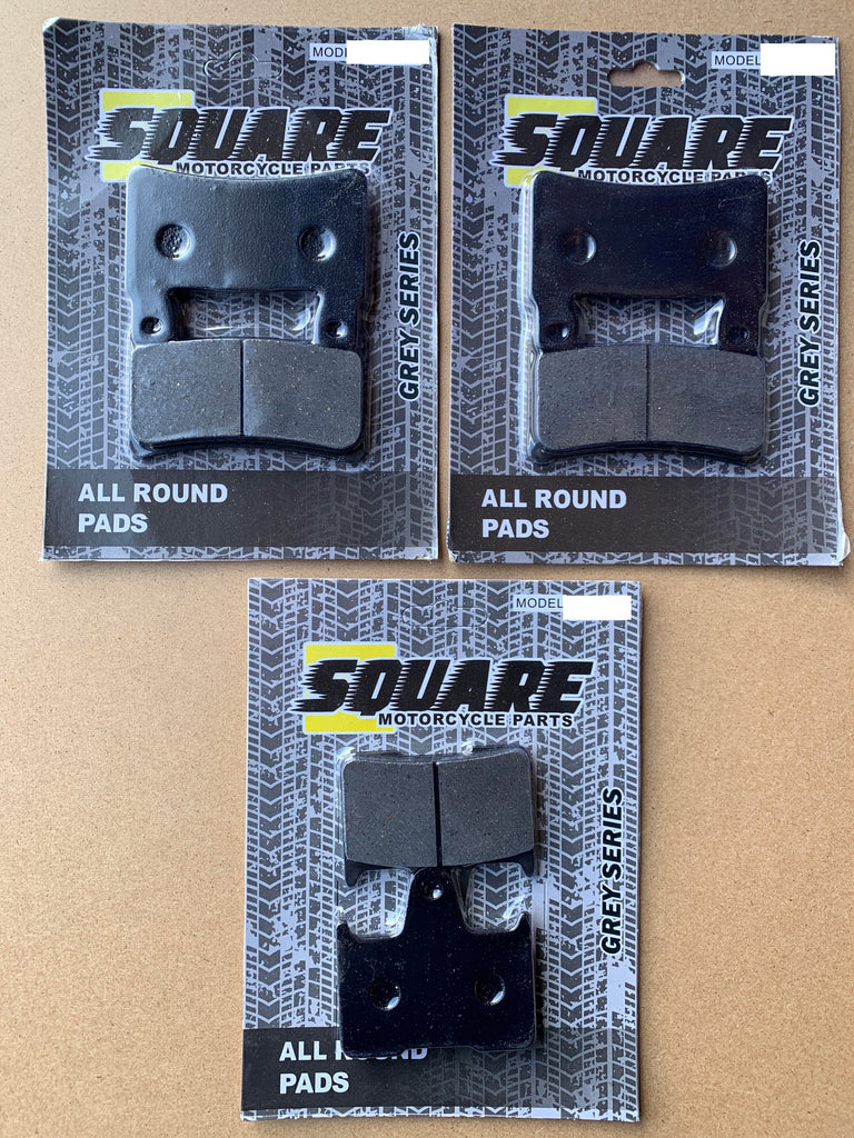 The set includes the front left, front right and rear brake disc pads.
