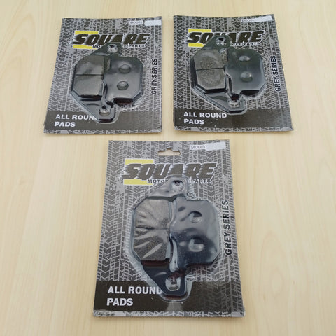 The set includes the front left, front right and rear pads as shown in the pictures.