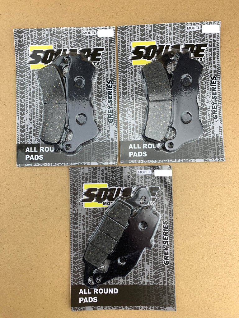 The set includes the front left, front right and rear pads as shown in the pictures.