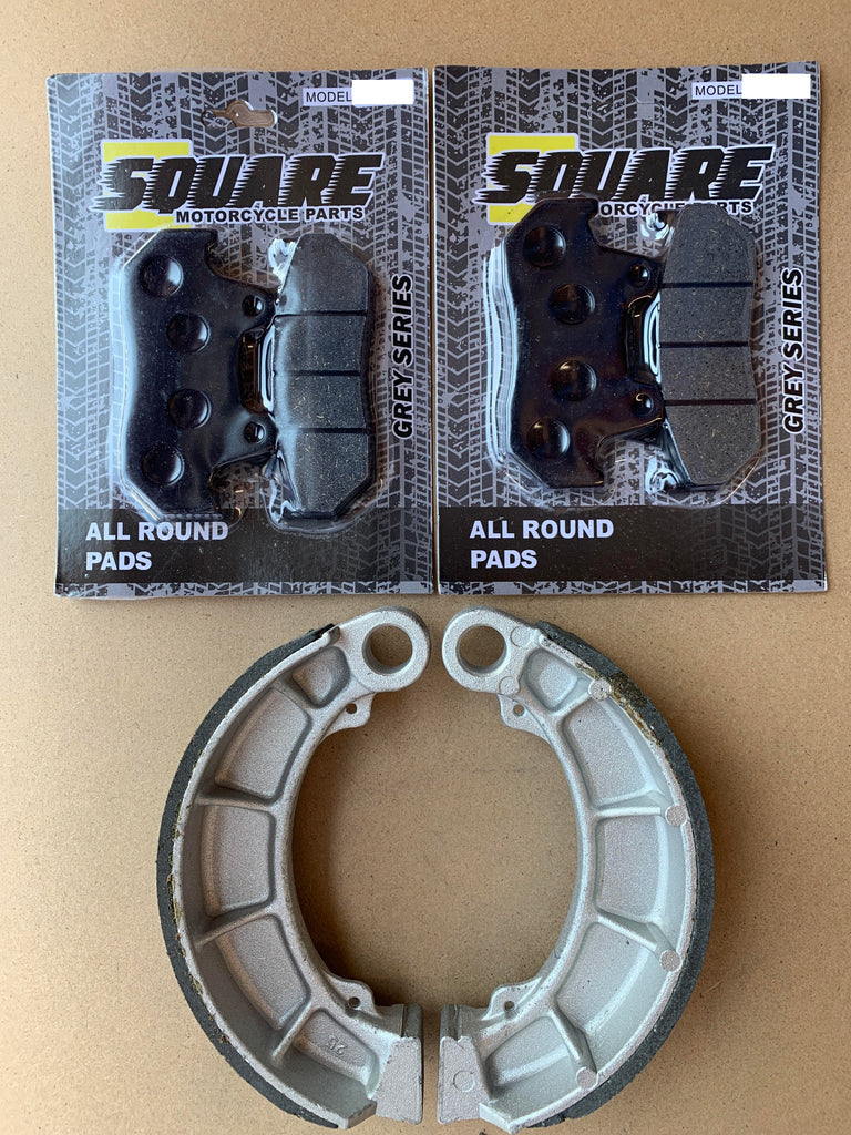 This set of front brake pads and rear brake drum shoes have been manufactured to replace the original brake sets on a Honda GL650 for the years and models shown above.