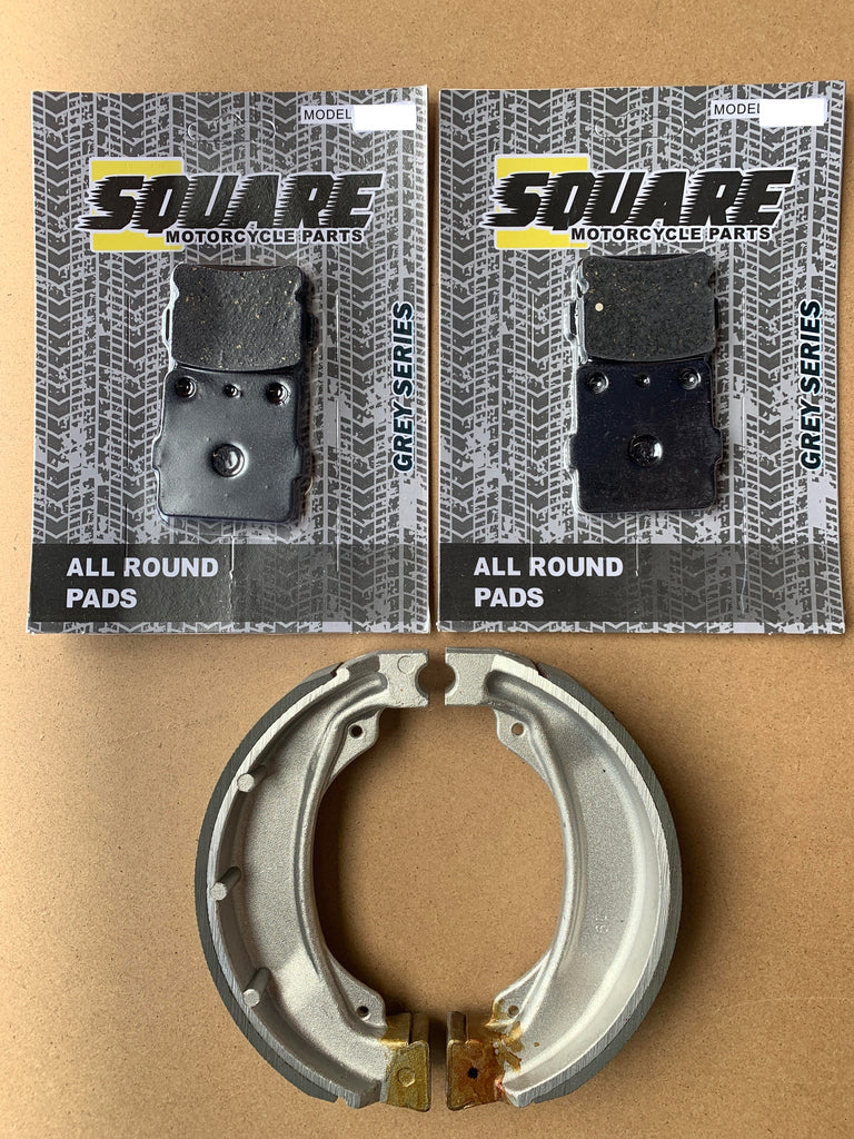 This set of front brake pads and rear brake drum shoes have been manufactured to replace the original brake sets on a Honda TRX250 for the years and models shown above.