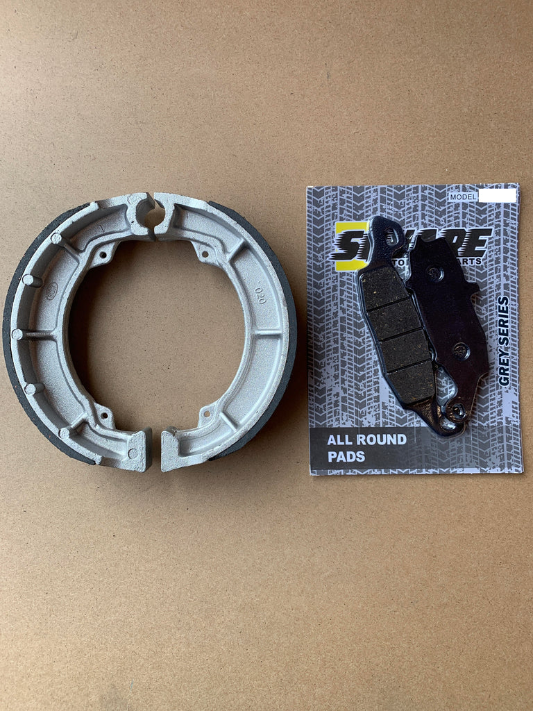 This set of front brake pads and rear brake drum shoes have been manufactured to replace the original brake sets on a Kawasaki EJ800 for the years and models shown above.