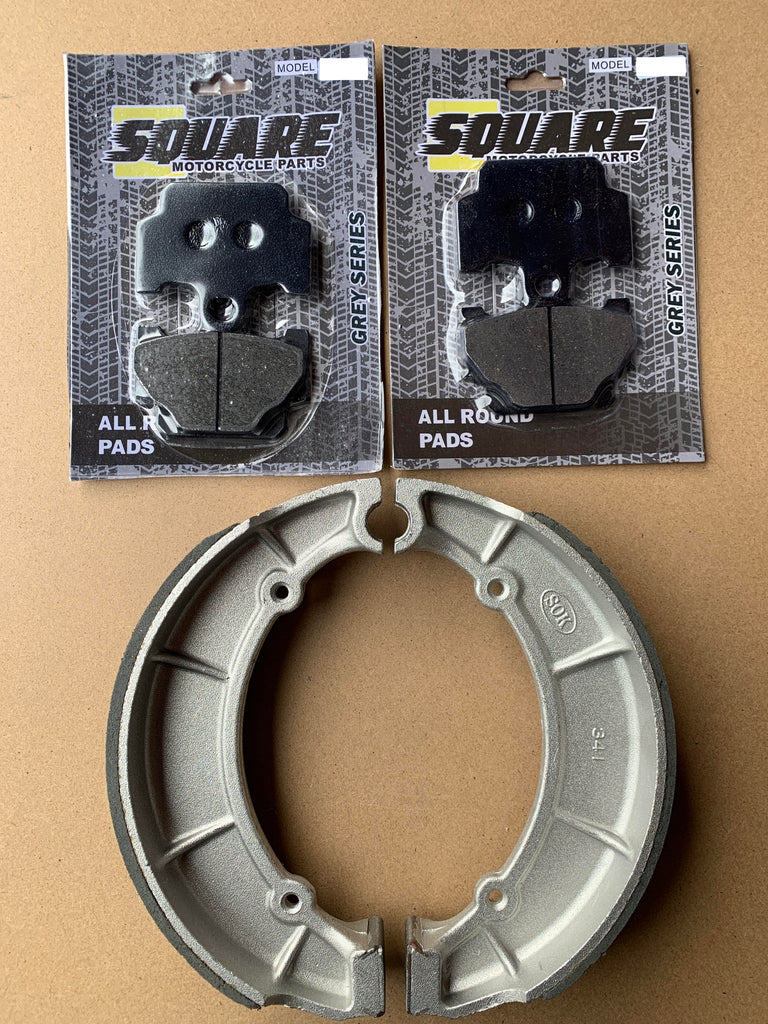 This set of front brake pads and rear brake drum shoes have been manufactured to replace the original brake sets on a Yamaha XJ650 for the years and models shown above.