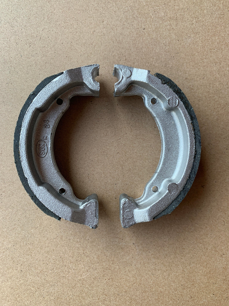 This set of brake drum shoes have been manufactured to replace the original front set of brake drum shoes on a Suzuki FS50 for the years and models shown above.