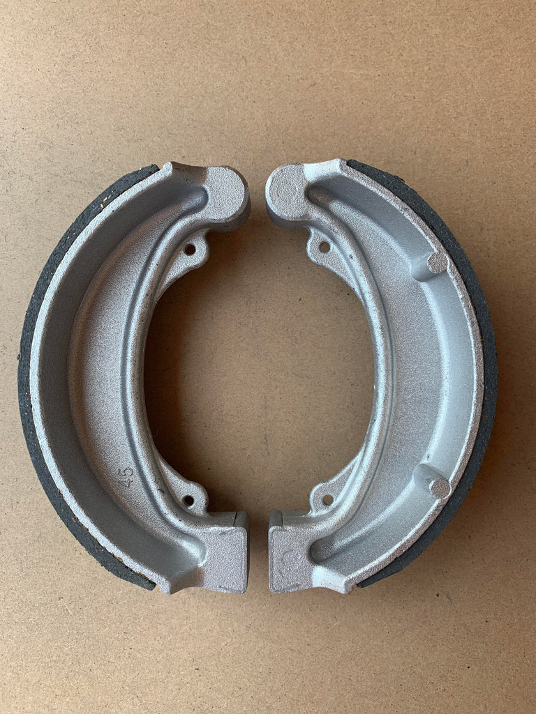 This set of brake drum shoes have been manufactured to replace the original rear set of brake drum shoes on a Honda VT500 for the years and models shown above.